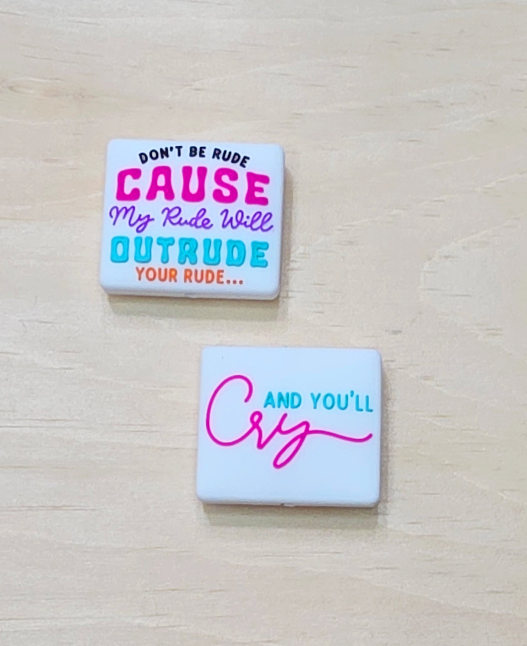 Don't be rude cause my rude will outrude your rude and you'll cry double-sided silicone focal bead - A102