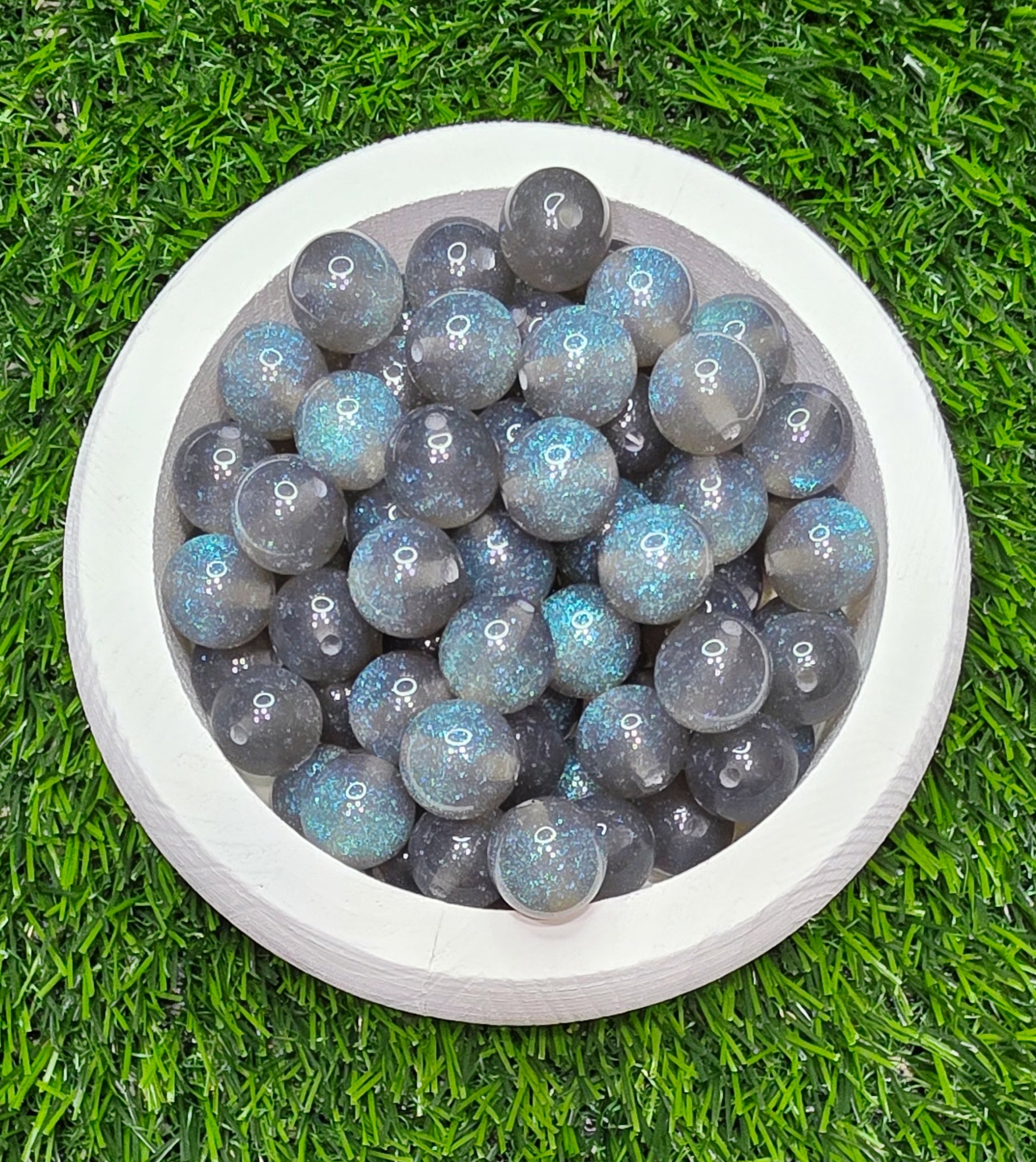 Gray glitter glow in the dark 16mm acrylic beads