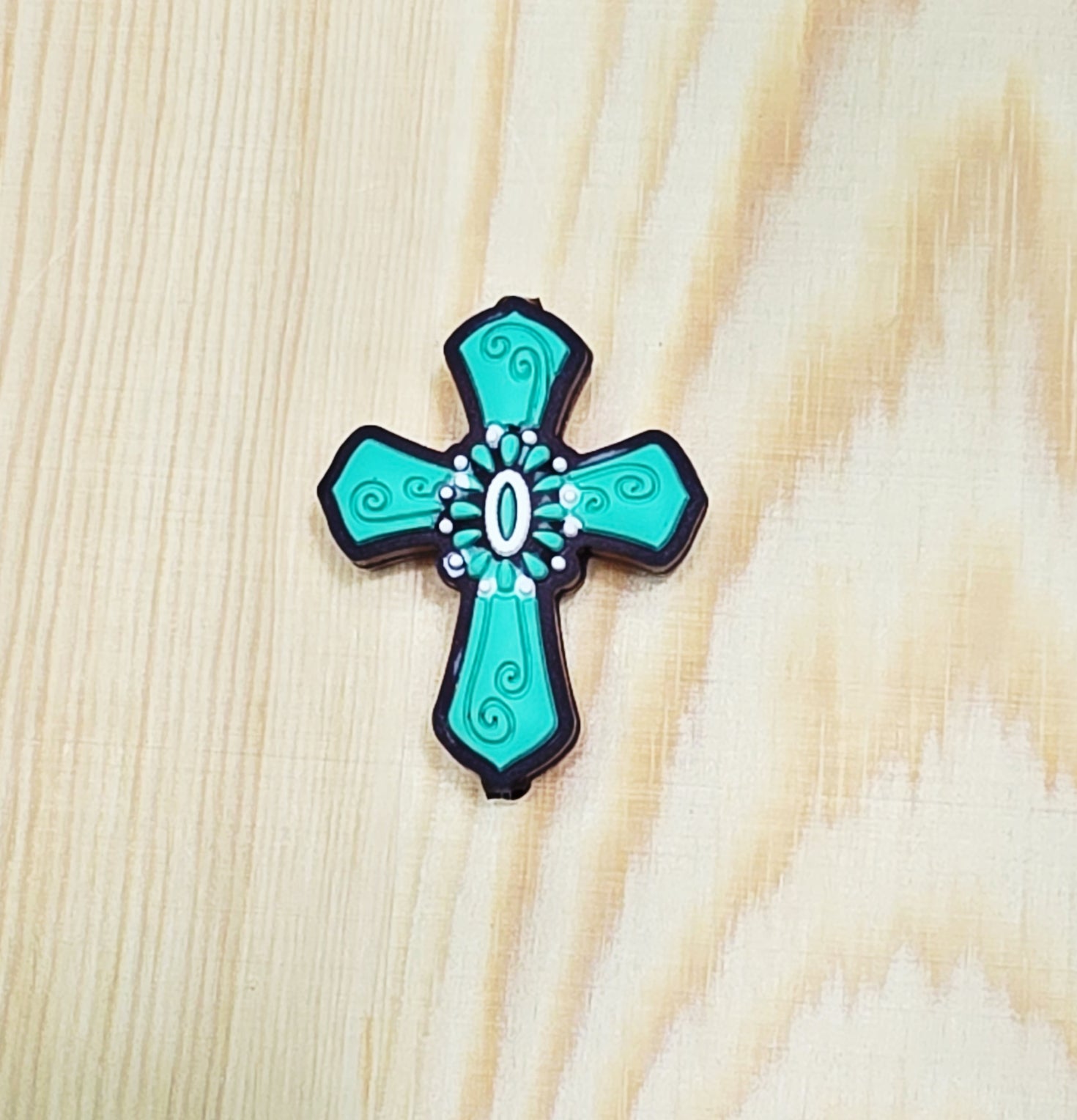 Teal cross silicone focal bead - A175