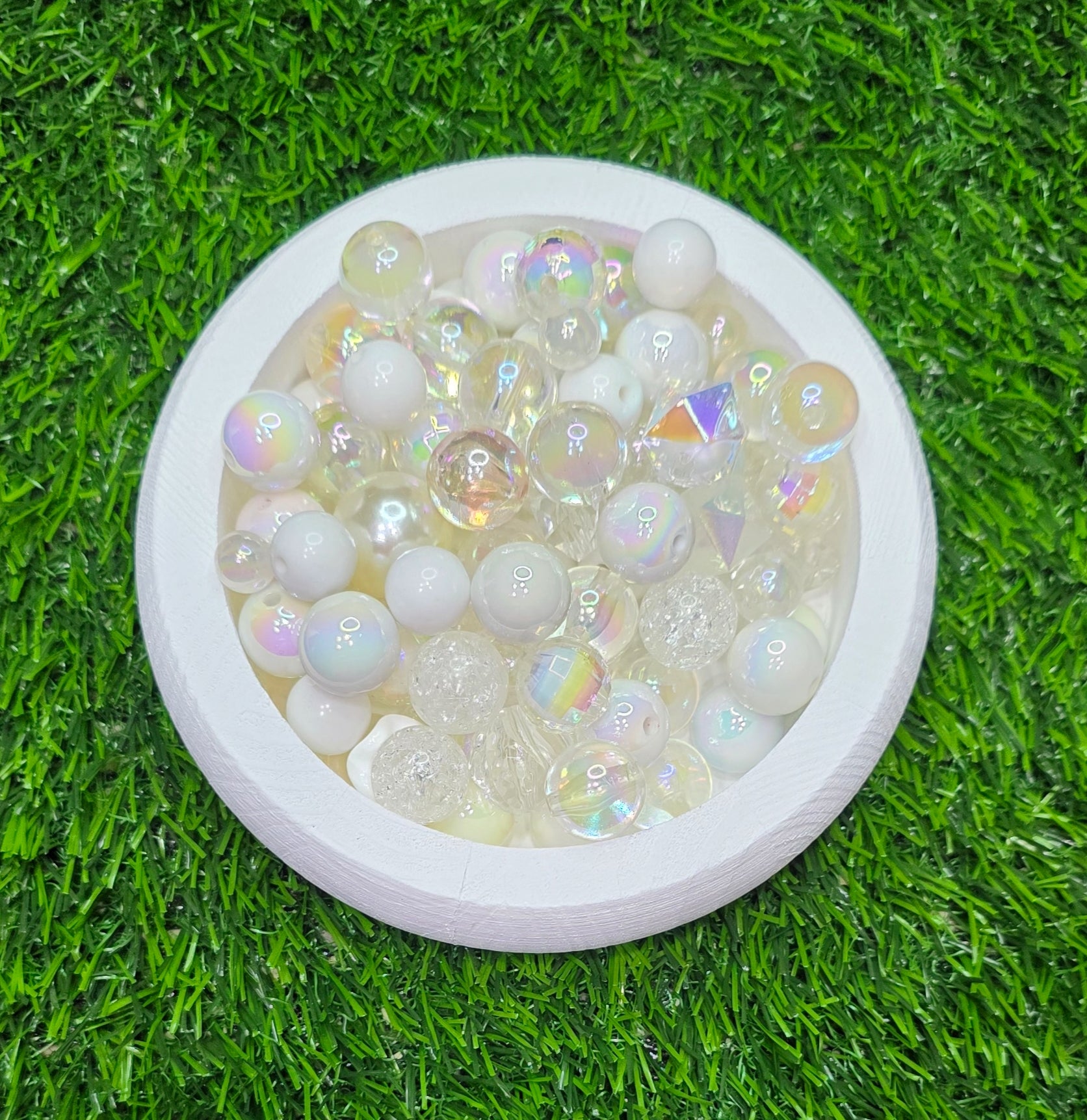 Mix acrylic beads in many different colors and sizes